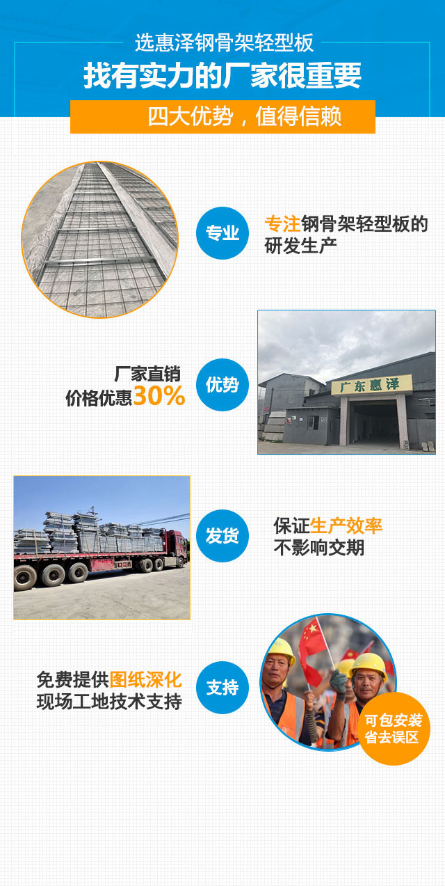 广东惠泽新型建材科技发展有限公司是一家建筑建材高新技术企业,致力于新型建筑材料研发和生产,并取得了多项国家专利和科技成果,竞争实力和经营业绩逐年上升,处于行业发展的前沿。公司生产钢骨架轻型板产品集轻质、高强、保温、防火、隔声等功能于一体,既保持了传统钢筋混凝土材料强度 ...